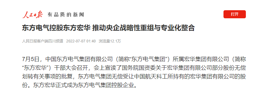 [人民日报]888集团6008控股东方宏华 推动央企战略性重组与专业化整合
