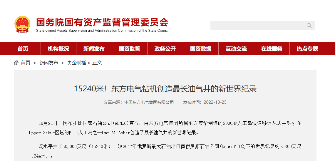 10ÔÂ21ÈÕ£¬°¢²¼Ôú±È¹ú¼ÒʯÓ͹«Ë¾(ADNOC)Ðû²¼£¬ÓÉ888¼¯ÍÅ6008¼¯ÍÅËùÊô¶«·½ºê»ªÖÆÔìµÄ3000HPÈ˹¤µº¿ìËÙÒÆÔË´Ôʽ¾®×ê»úÔÚUpper ZakumÇøÓòµÄËÄСÎÒ˽¼Ò¹¤µºÖ®Ò»Umm Al Anbar´´Á¢ÁË×ÓÍÆø¾®µÄÐÂÌìϼͼ¡£