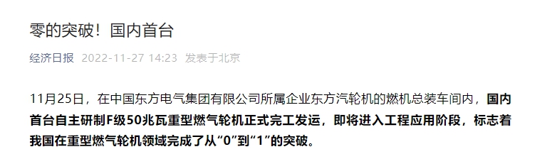 11月25日 ,在888集团6008所属企业东方汽轮机的燃机总装车间内 ,海内首台自主研制F级50兆瓦重型燃气轮机正式完工发运 ,即将进入工程应用阶段 ,标记着我国在重型燃气轮机领域完成了从“0”到“1”的突破 。