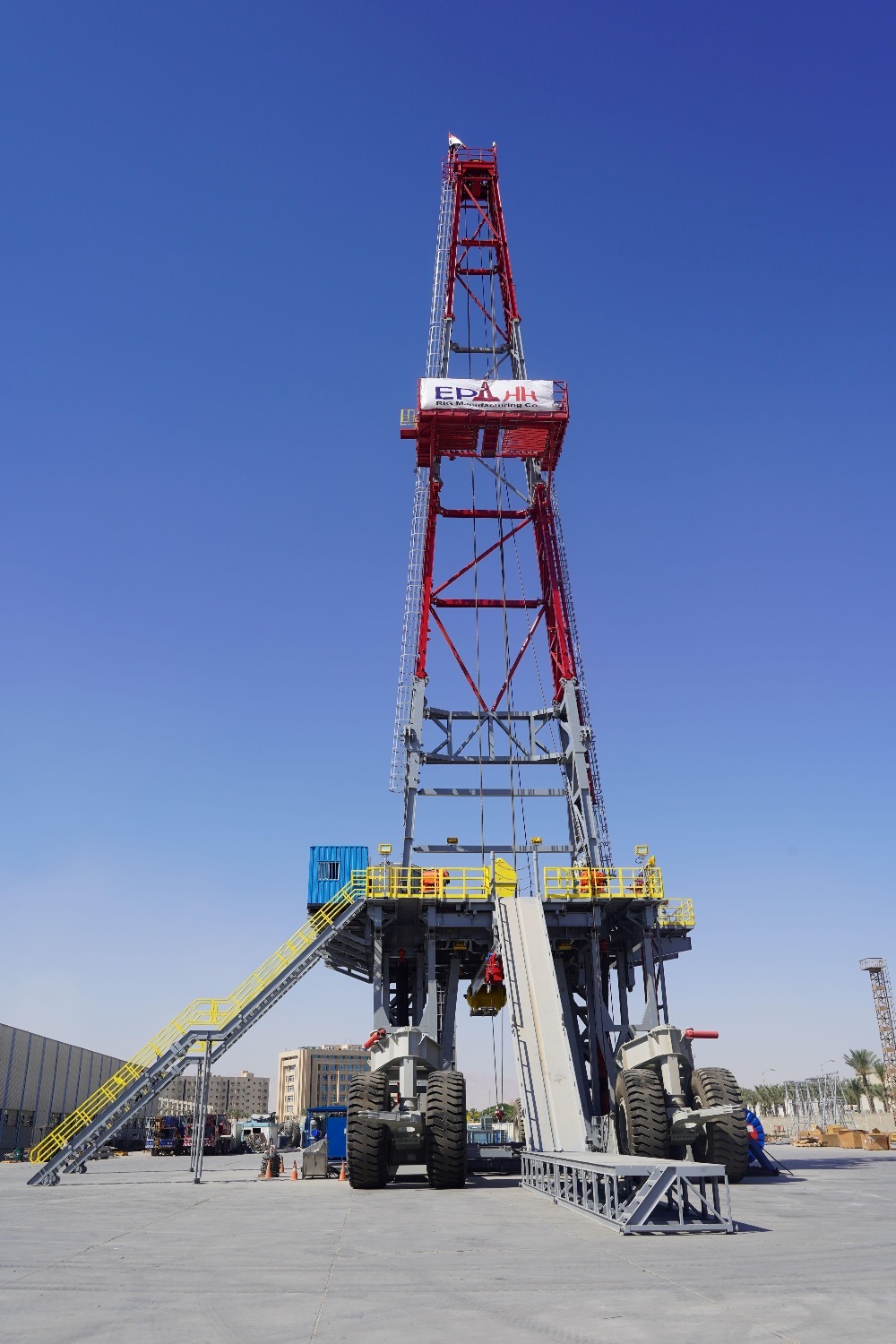 这是6月26日拍摄的埃及造首套2000马力全自动拖挂陆地石油钻机。(新华社记者姚兵 摄)