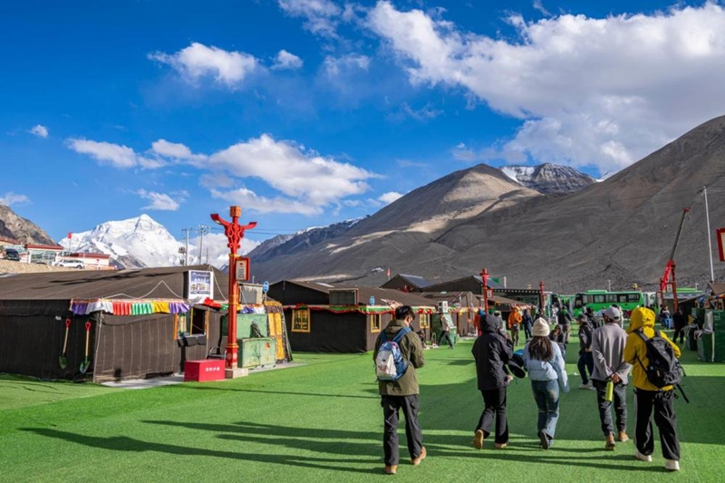 ??2024年5月24日,游客行走在珠峰游客大本营。现在,珠穆朗玛国家公园已进入旅游旺季。新华社记者 孙非 摄
