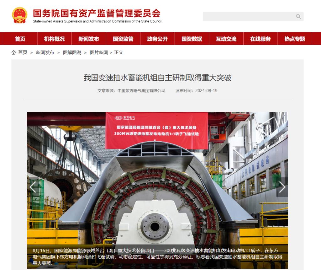 [国资委网站]我国变速抽水蓄能机组自主研制取得重大突破