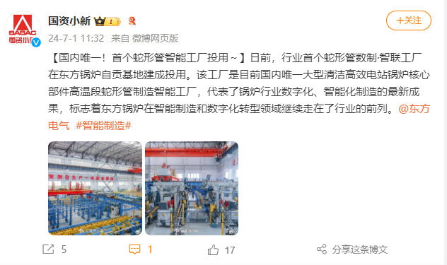 [国资小新]海内唯一!首个蛇形管智能工厂投用~