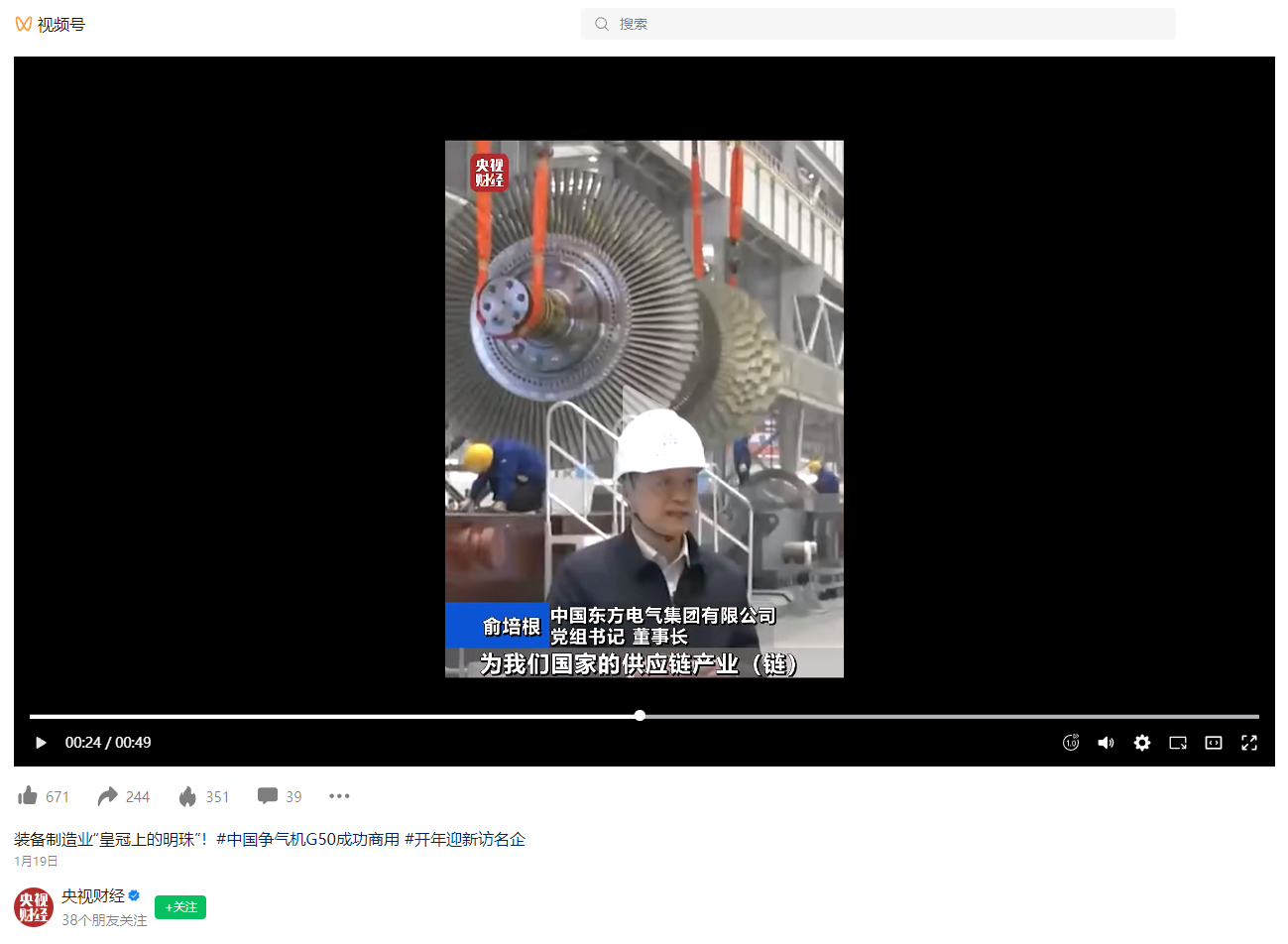 [央视财经]装备制造业“皇冠上的明珠”!#中国争气机G50乐成商用 #开年迎新访名企