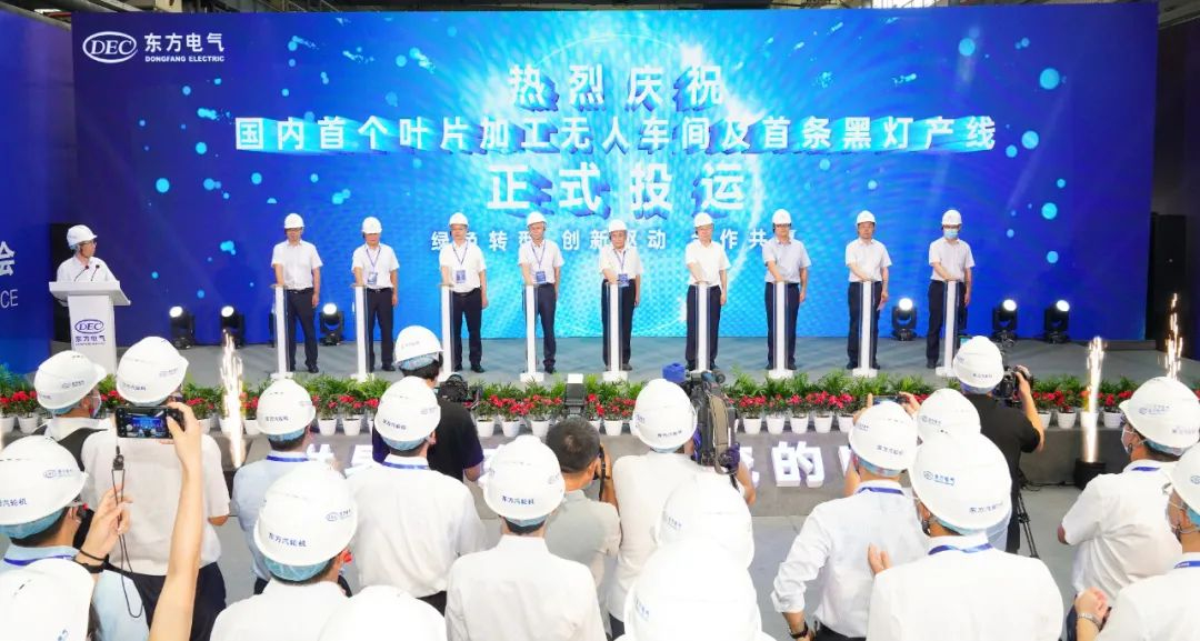 东方汽轮机建设的海内首个叶片加工无人车间及首条黑灯产线正式投运
