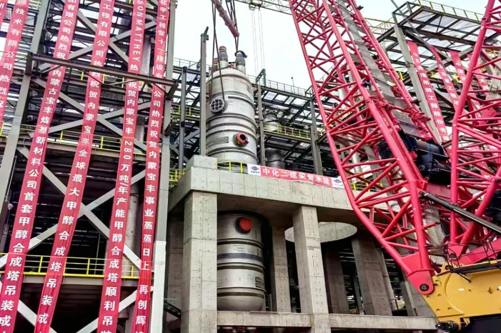 该甲醇合成塔单台重达631吨,长度凌驾28米,是现在天下单套煤制甲醇产量最大的甲醇合成塔,也是该年产280万吨甲醇项目的要害装备。