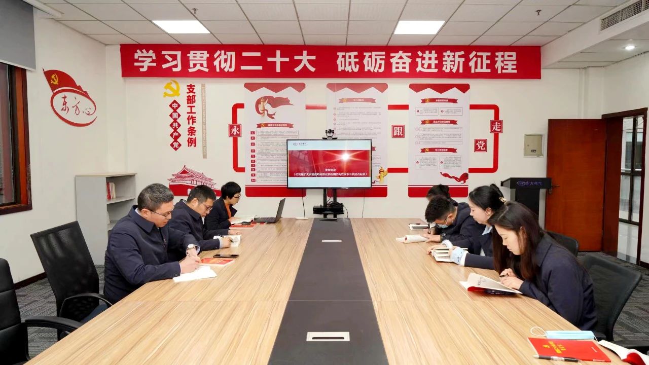 东树新质料团支部组织开展“读报告”“ 上团课”“讲心得”学习党的二十大精神“三合一”活动,团支部书记讲团课、忆初心,团员代表带动读报告、学全文,青年党员讲心得、谈体会,用听得懂、记得住、用得上的语言向宽大团员青年宣传贯彻党的二十大精神,用党的斗争目的感召团员青年,切实营造学习党的二十大精神的优异气氛。