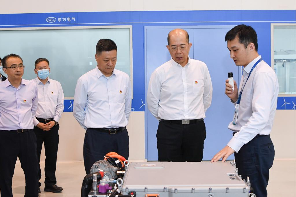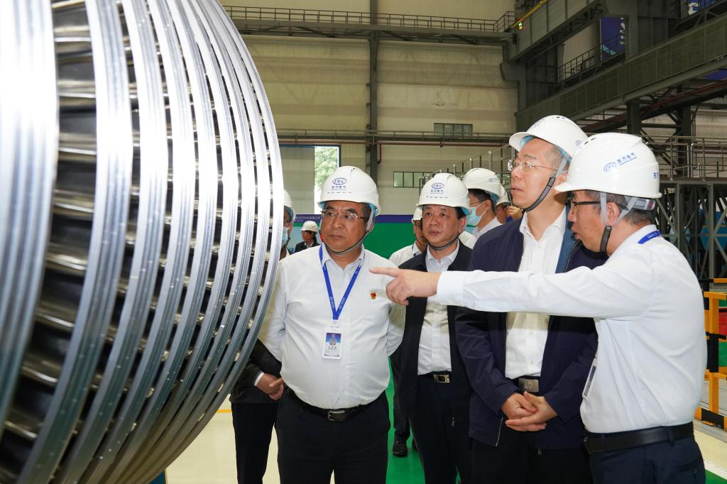 谭作钧一行深入888集团6008集团德阳生产制造基地,到所属东方汽轮机、东方电机的天下重点实验室、叶片加工黑灯产线、汽轮机数字化总装车间、大型清洁能源装备重型制造数字化车间、东电印迹、劳模巨匠立异事情室、党员活动室等下层一线调研。在中国“争气机”整机试验台前,谭作钧高度一定14年来F级50兆瓦重型燃机的自主立异效果,勉励青年科研事情者传承好“东汽精神”,在勇攀科技的岑岭插上888集团6008的旌旗。